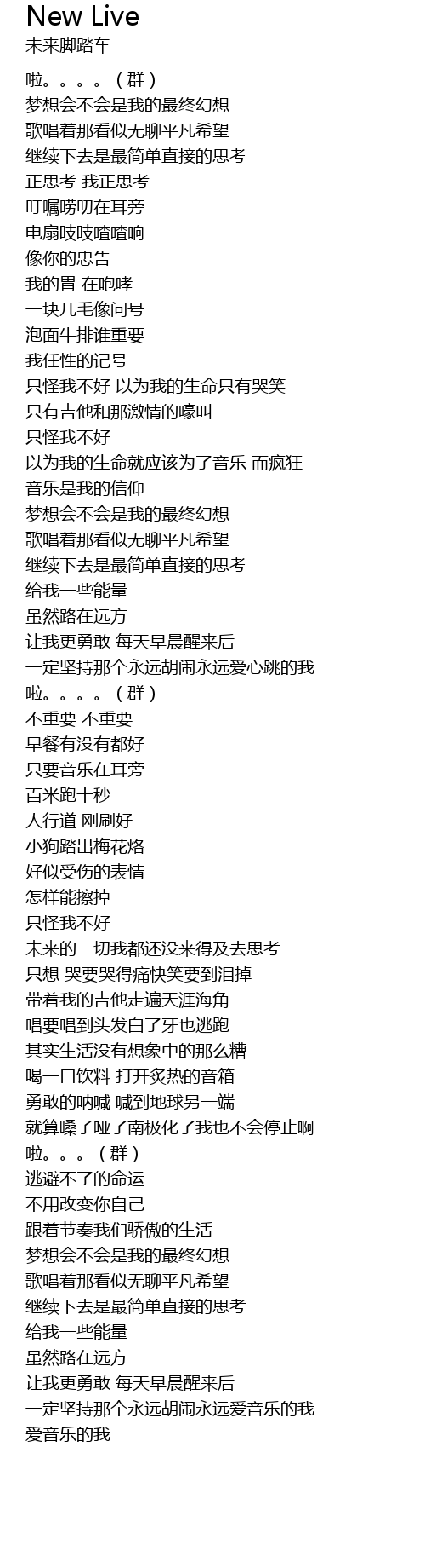 | [04:04.699] | 让我更勇敢 每天早晨醒来后 一定坚持那个永远胡闹永远爱音乐的我 |