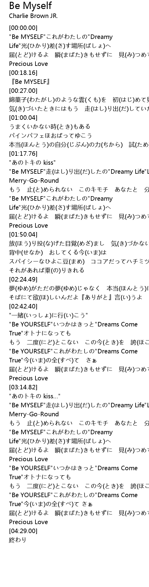 | [03:58.33] | "Be YOURSELF"いつかはきっと"Dreams Come True"オトナになっても |