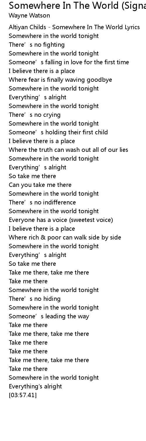 | [00:00.00] | Altiyan Childs - Somewhere In The World Lyrics |
