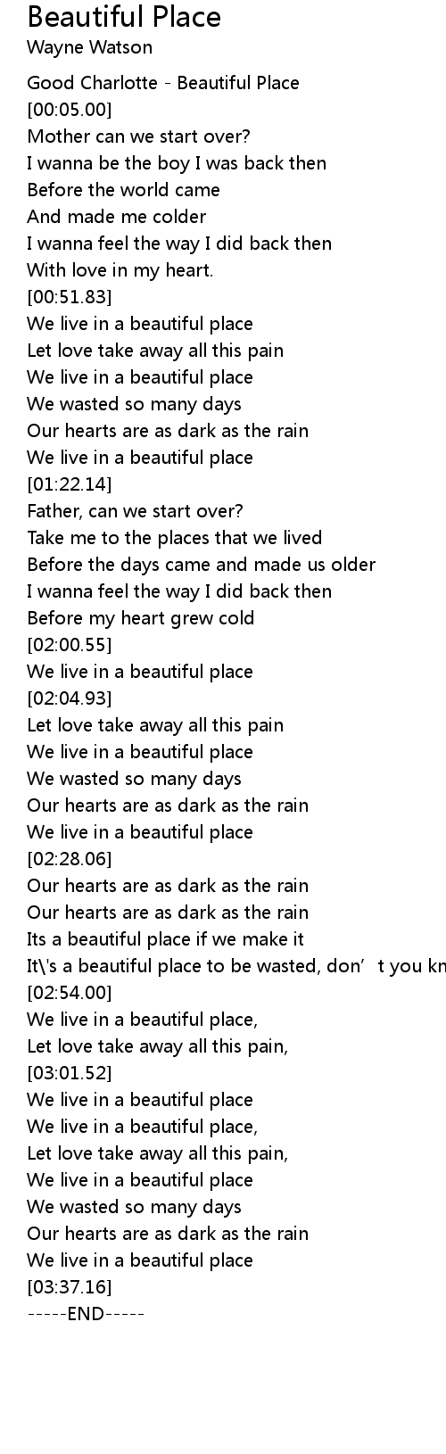 | [00:00.00] | Good Charlotte Beautiful Place |