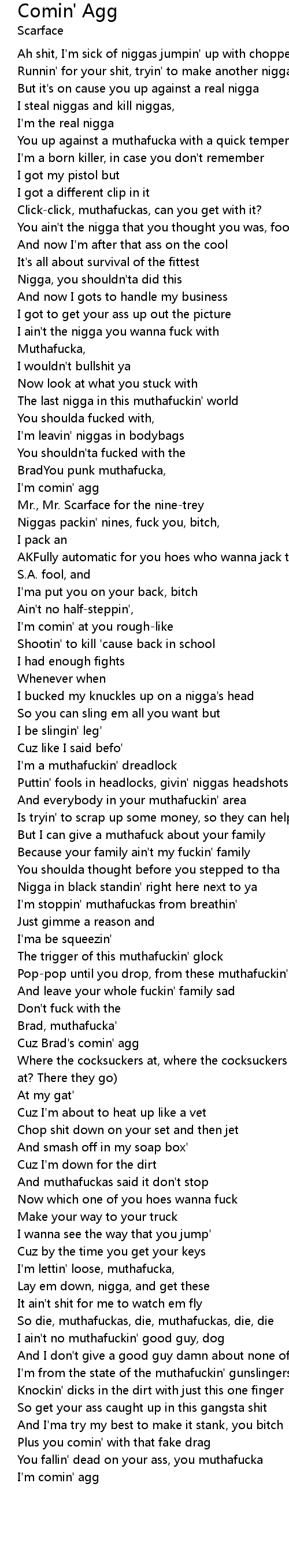 I'm comin' agg |