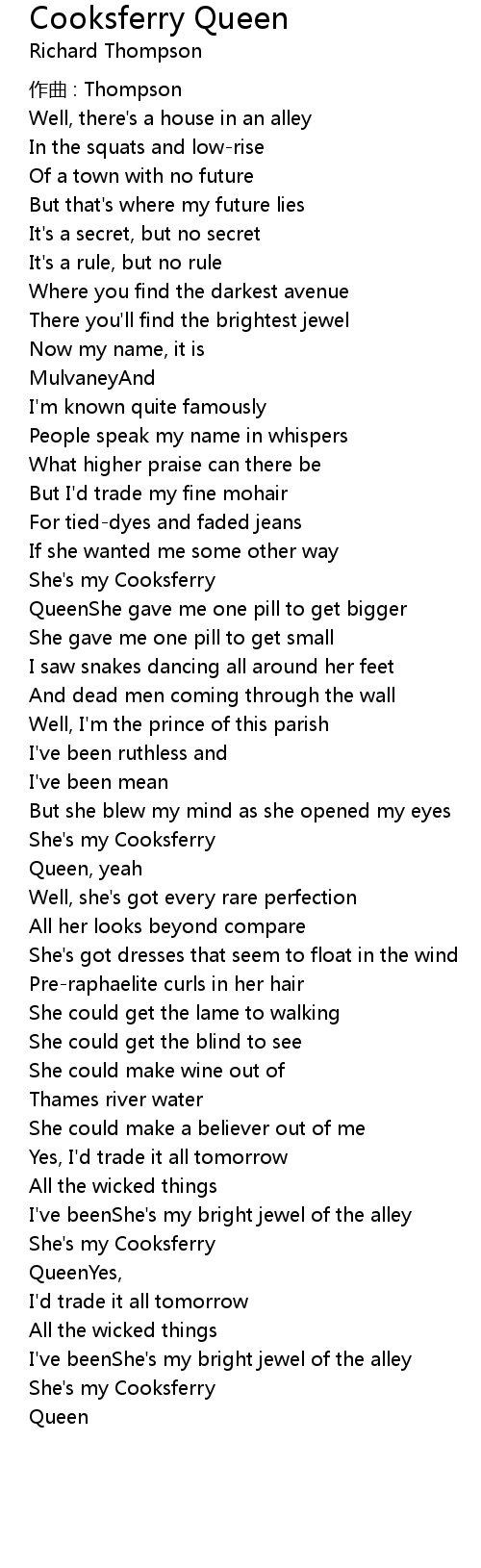 | 歌曲 | Cooksferry Queen |