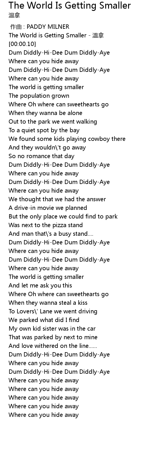 | [00:00.00] | The World is Getting Smaller - 溫拿 |