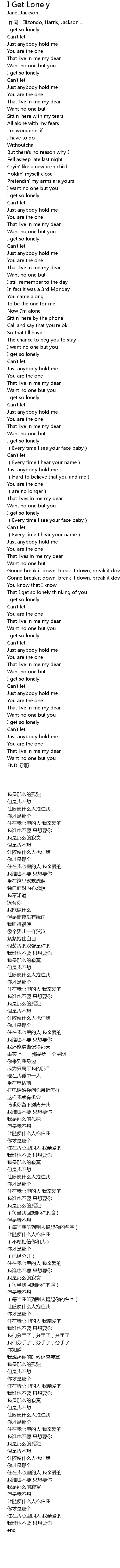 | [00:34.01] | I get so lonely |