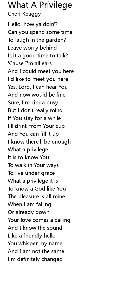 What a privilege it is |