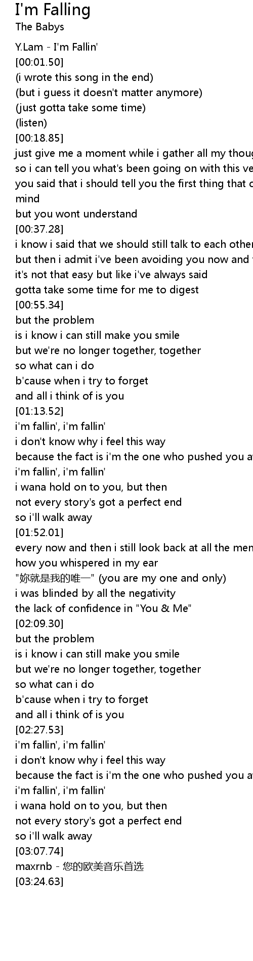 | [00:00.00] | Y. Lam I' m Fallin' |