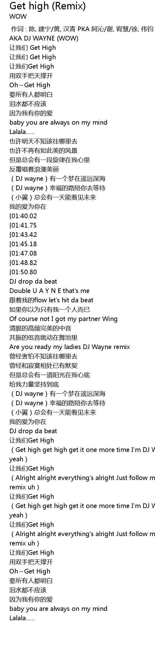 | [03:07.13] | Get high get high get it one more time I' m DJ Wayne let' s remix yeah |