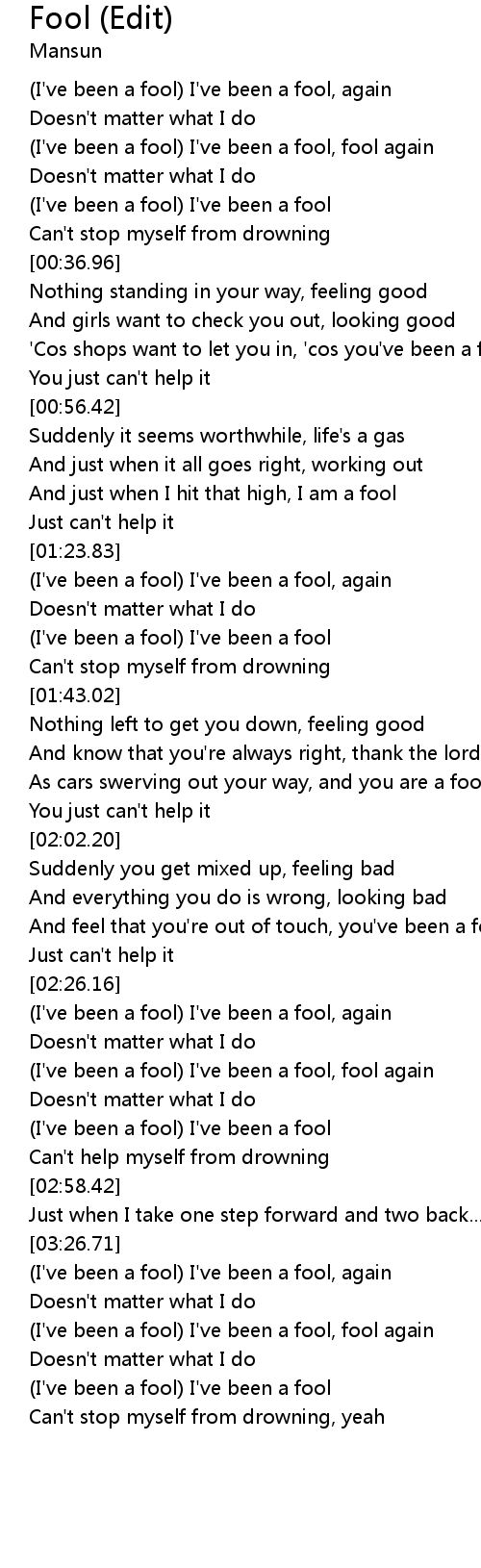 [03:36.58] (I've been a fool) I've been a fool, fool again