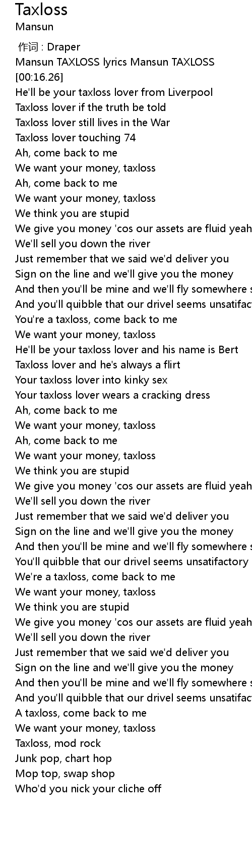 | [00:51.40] | We want your money, taxloss |