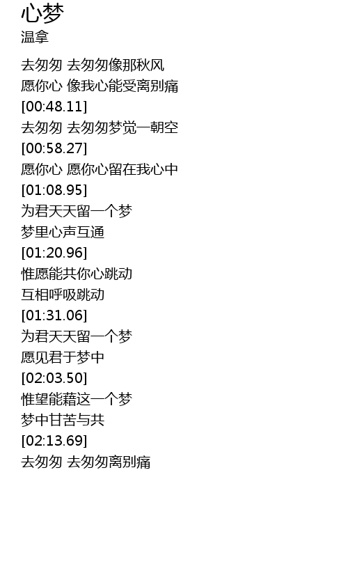 | [00:41.06] | 愿你心 像我心能受离别痛 |