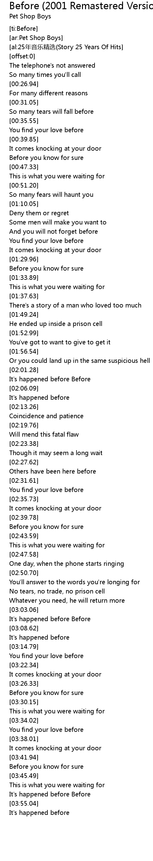 | [02:51.76] | You' ll answer to the words you' re longing for |