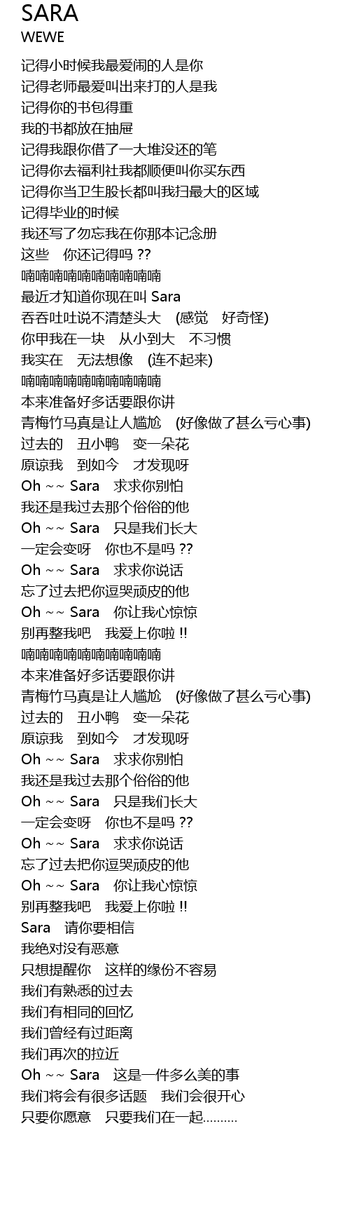 | [02:40.72] | Oh Sara zhǐ shì wǒ men zhǎng dà |