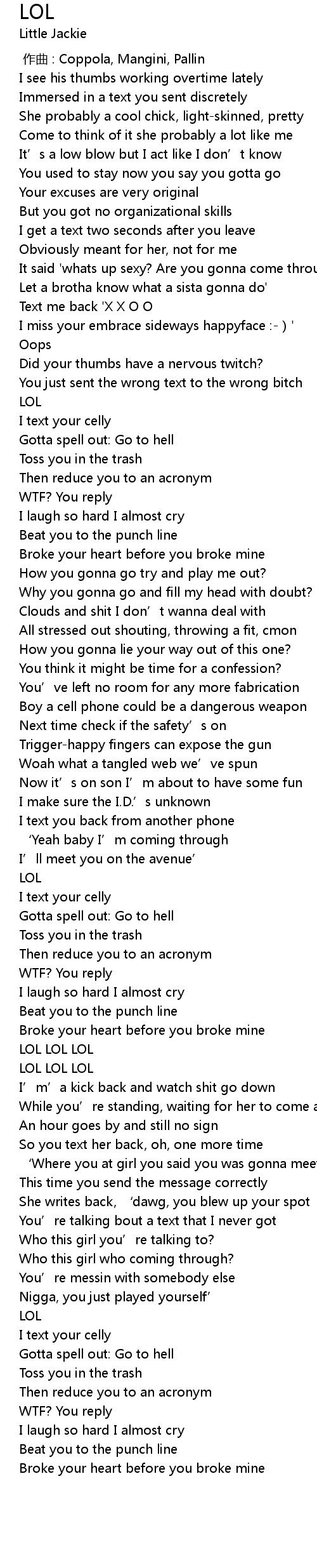 | [01:52.72] | LOL LOL LOL |