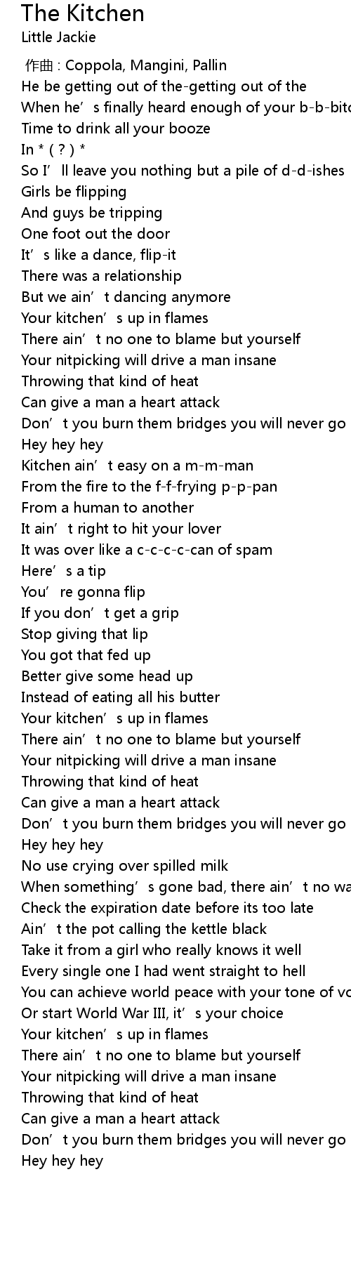 | [00:55.97] | Kitchen ain’t easy on a m-m-man |