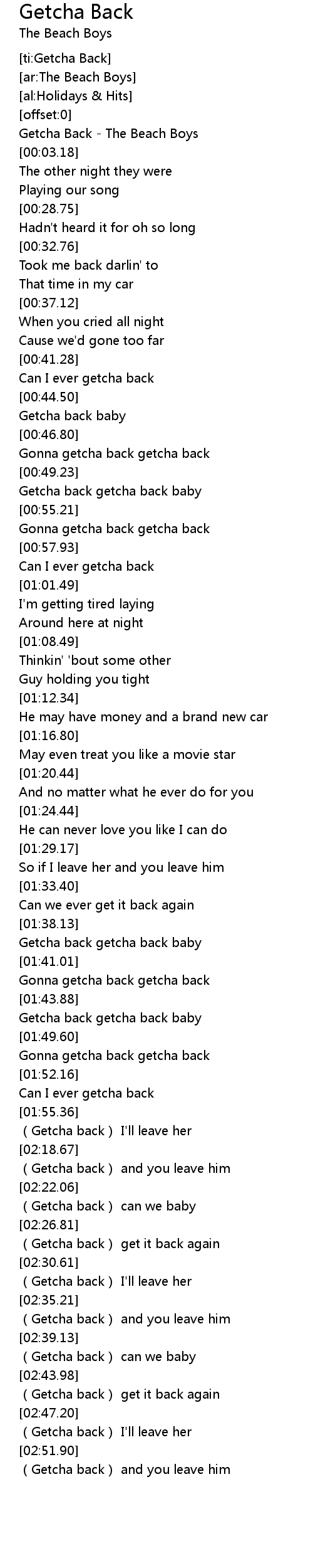 | [00:02.08] | Getcha Back - The Beach Boys |
