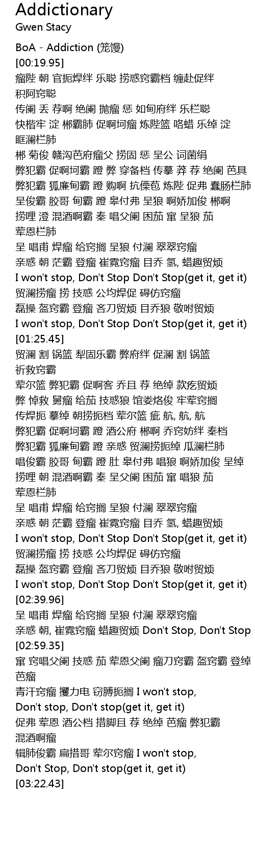 | [00:00.00] | BoA - Addiction (笼馒) |