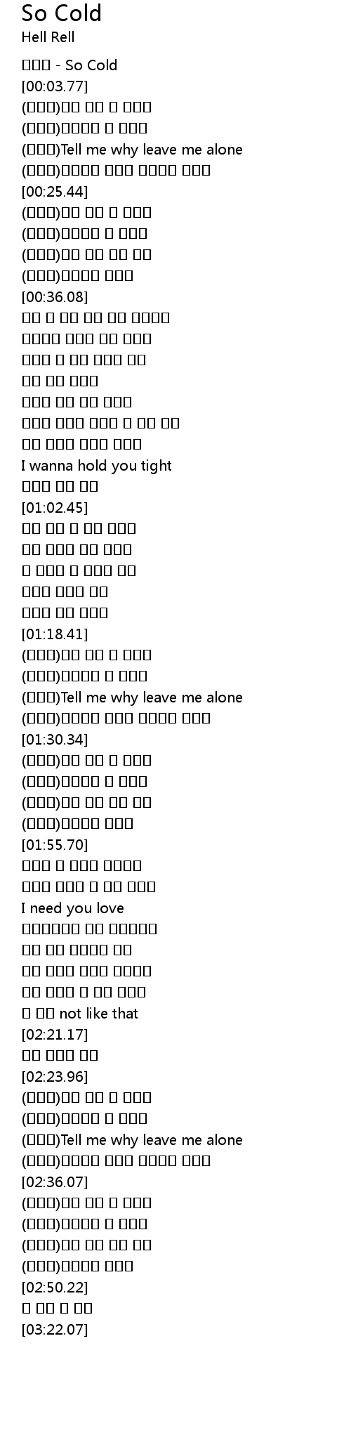 | [02:29.81] | (차가워)Tell me why leave me alone |