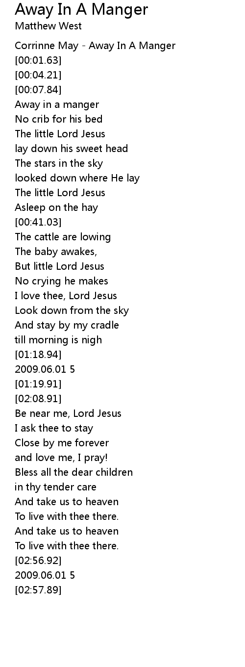 | [00:00.82] | Corrinne May - Away In A Manger |