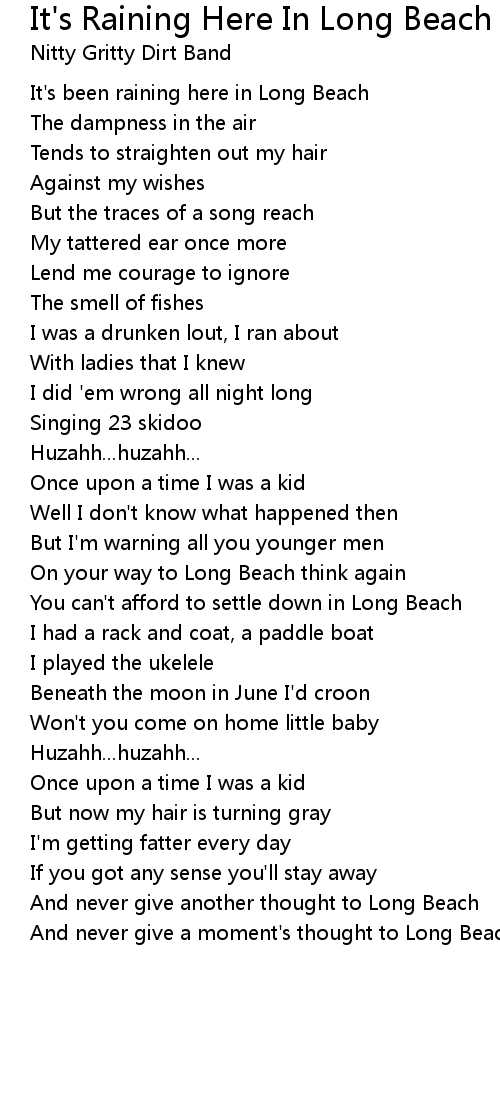 And never give a moment's thought to Long Beach |