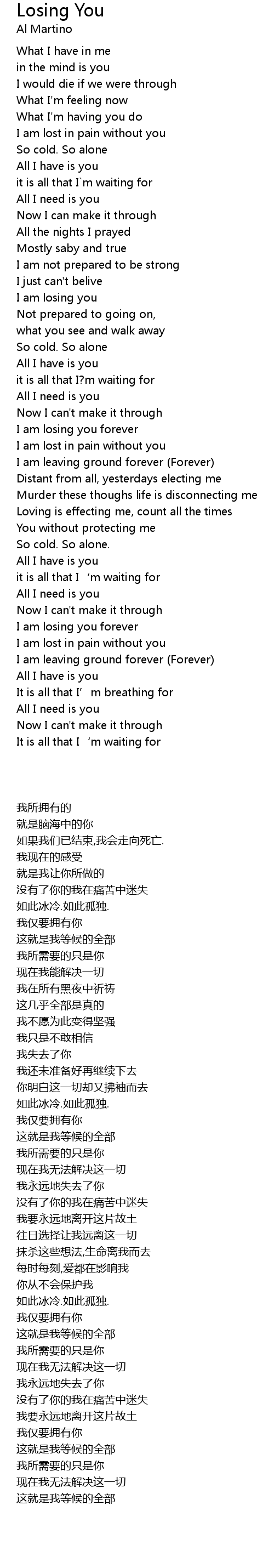 | [00:37.850] | I am lost in pain without you |