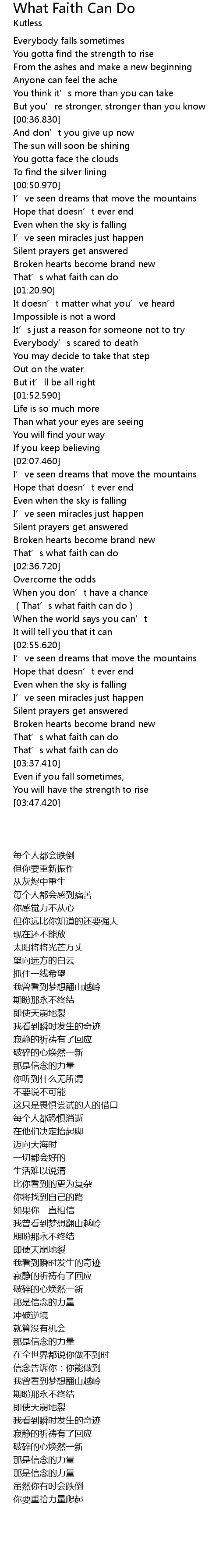 | [03:22.90] | That' s what faith can do |