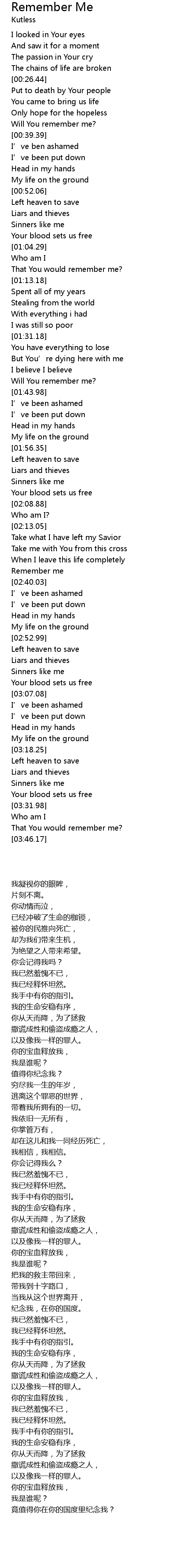 | [03:34.83] | 竟值得你在你的国度里纪念我? |