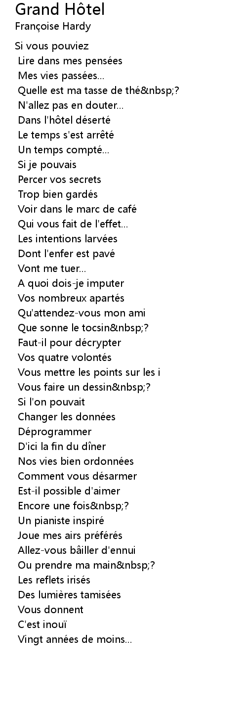 | 歌曲 | Grand Hôtel |