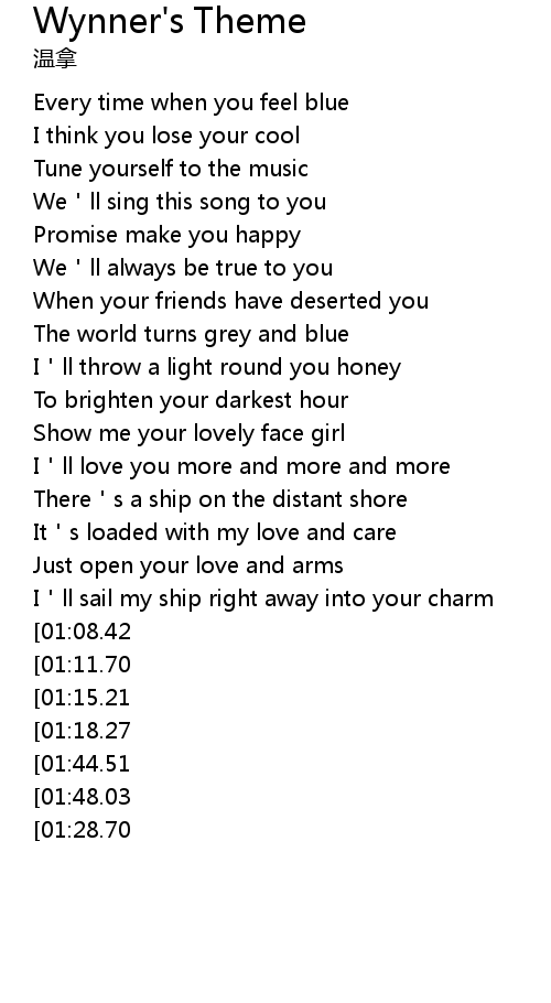 | [01:30.86][01:08.42] | Sha la la sing together |