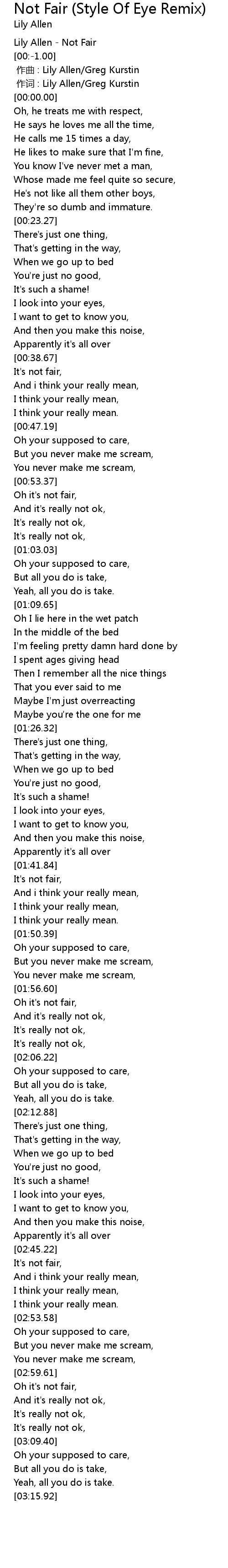 | [00:-2.00] | Lily Allen Not Fair |