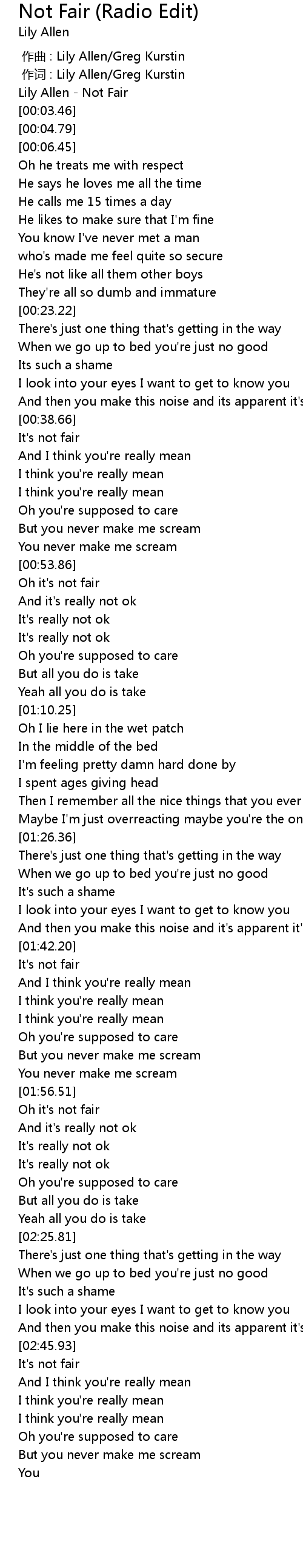 | [00:01.12] | Lily Allen - Not Fair |