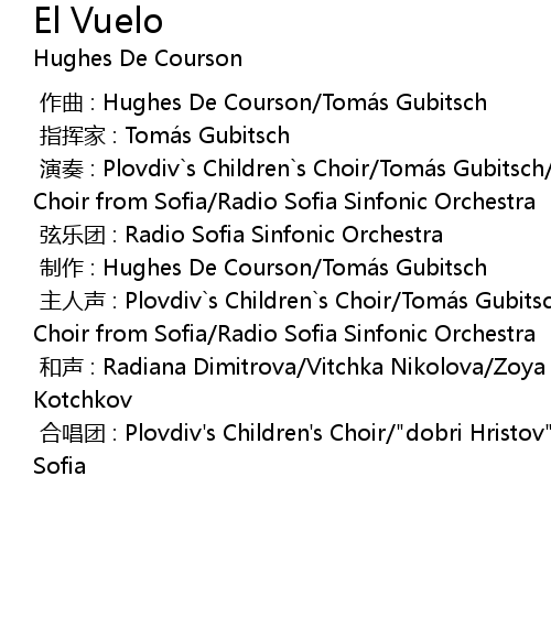 | [00:00.000] | yan zou : Plovdiv s Children s Choir Toma s Gubitsch Dobri Hristov Choir from Sofia Radio Sofia Sinfonic Orchestra |