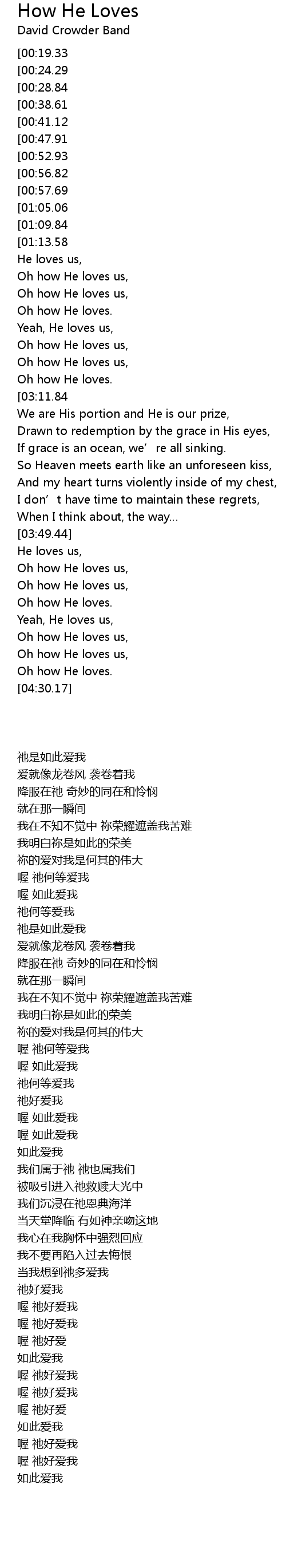 | [02:21.79][01:05.06] | Oh how He loves us, |