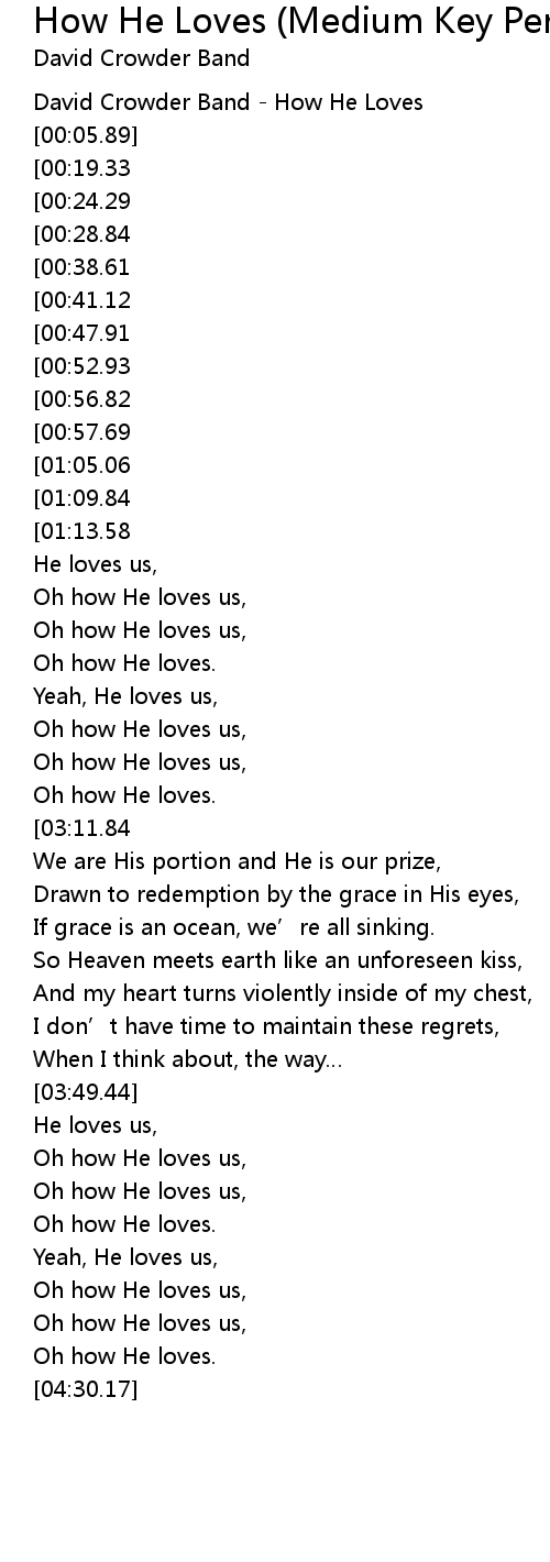 | [02:21.79][01:05.06] | Oh how He loves us, |
