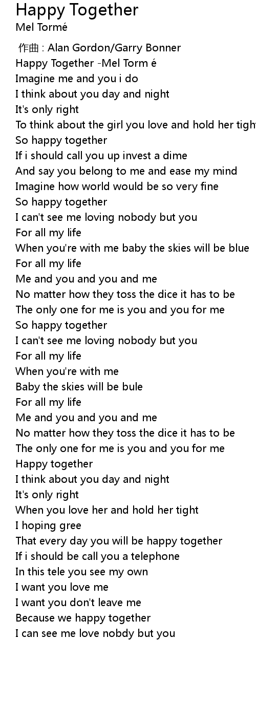 | [00:00.730] | Happy Together Mel Torm e |