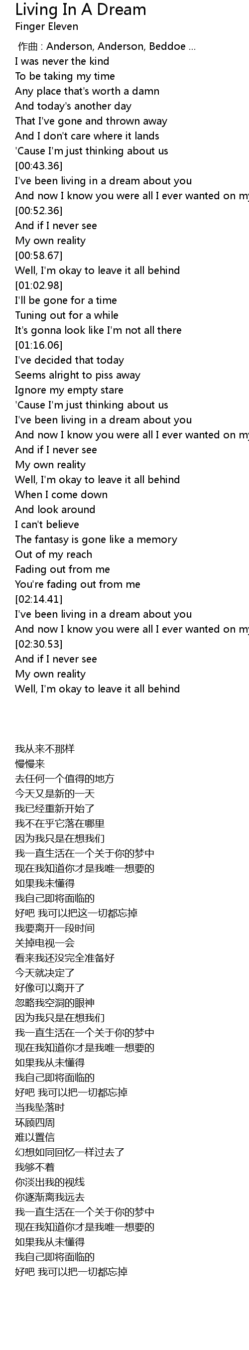 | [00:44.23] | 我一直生活在一个关于你的梦中 |