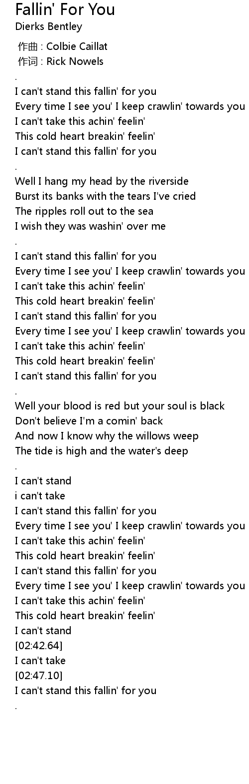 | [00:13.98] | I can' t stand this fallin' for you |
