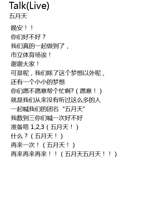 | [00:46.098] | 一起喊我们的团名“五月天” |