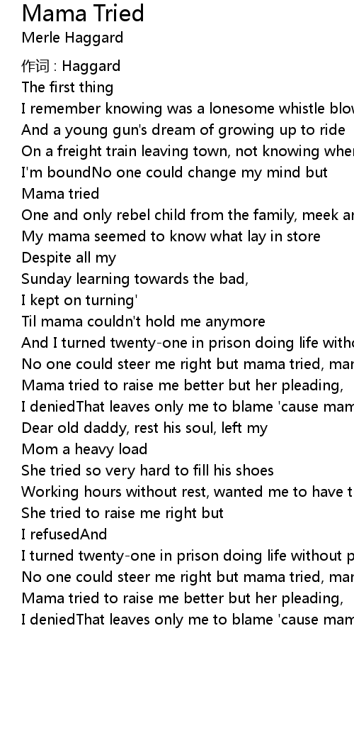 | I deniedThat leaves only me to blame 'cause mama tried | |