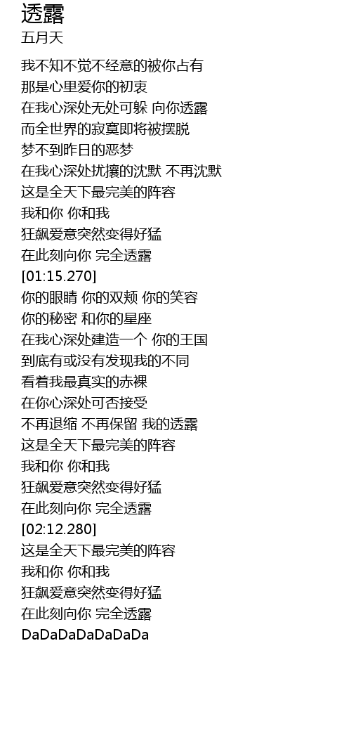 | [01:46.900] | 不再退缩 不再保留 我的透露 |
