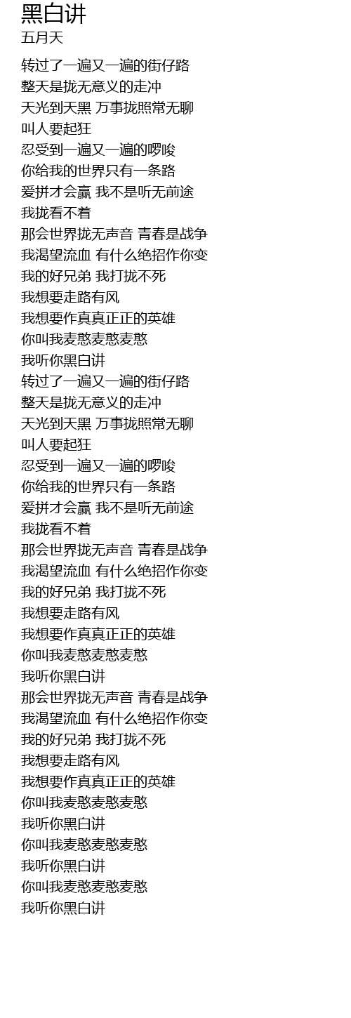 | [03:16.35] | wǒ tīng nǐ hēi bái jiǎng |