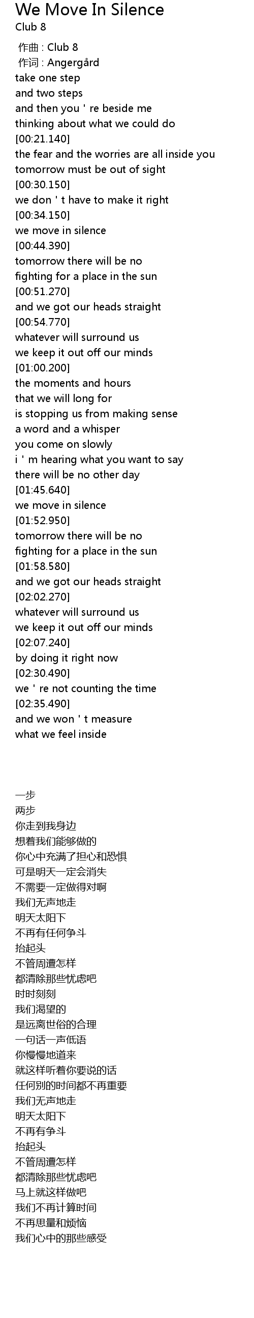 | 歌曲 | We Move In Silence |