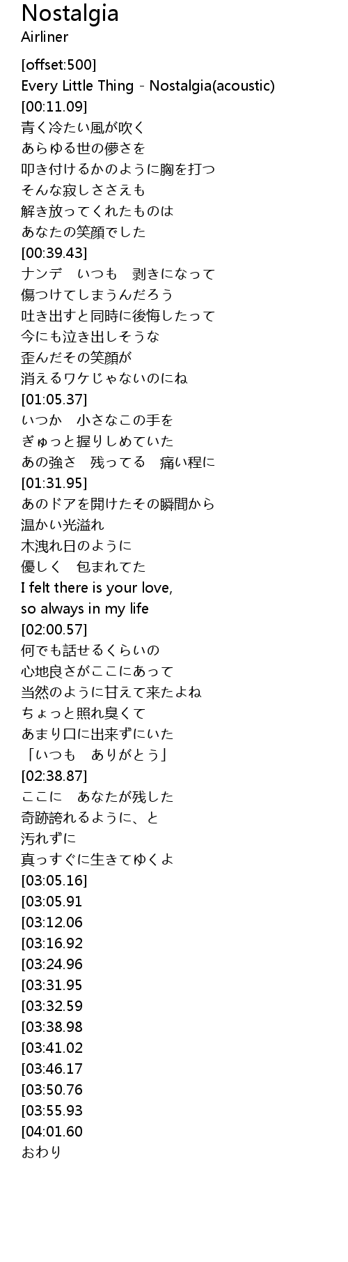 | [00:00.00] | Every Little Thing Nostalgia acoustic |