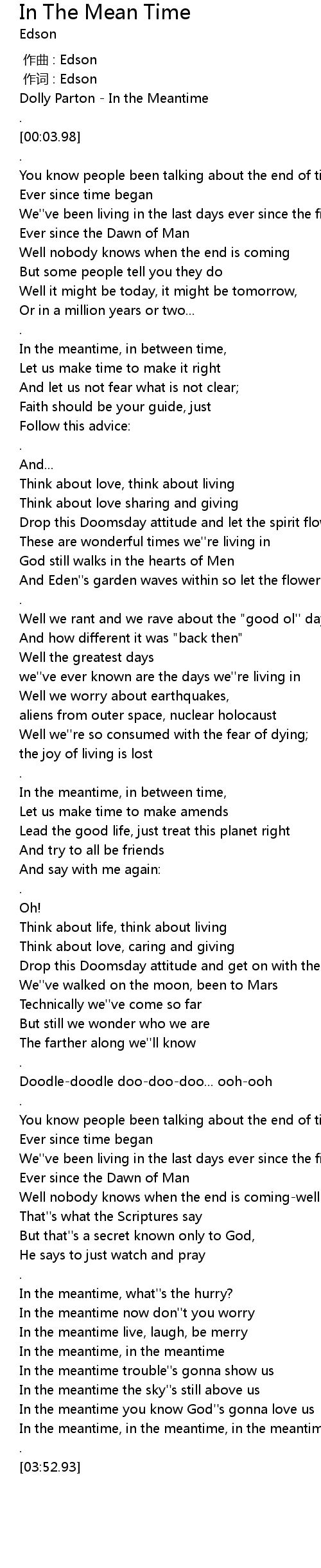 | [03:41.74] | In the meantime, in the meantime, in the meantime... |