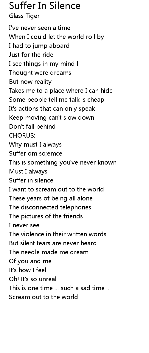 Suffer In Silence 歌词