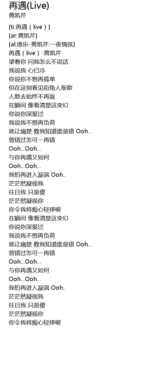 | [00:15.56] | 再遇(live)-黄凯芹 |