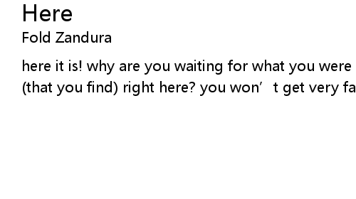 | here it is! why are you waiting for what you were looking for that you find (that you find) right here? you won’t get very far you won’t get far… |