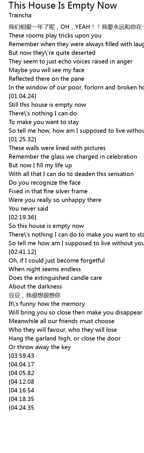 | [01:04.62] | Still this house is empty now |