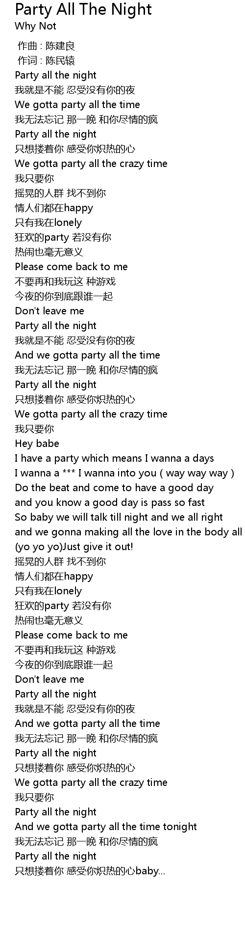 | [02:57.186] | kuáng huān de party ruò méi yǒu nǐ |