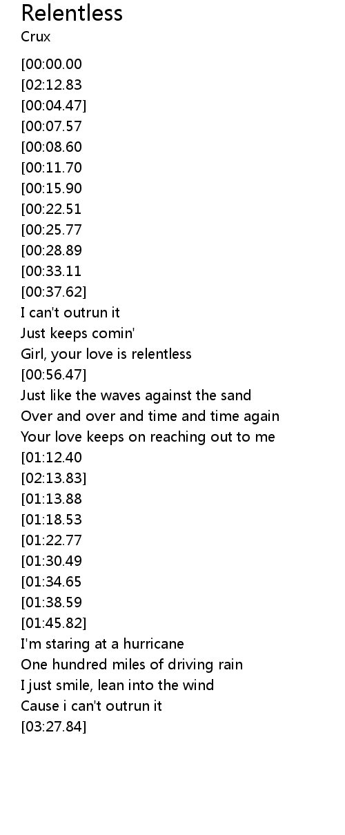 | [02:45.66][01:38.59] | Girl your love is relentless |
