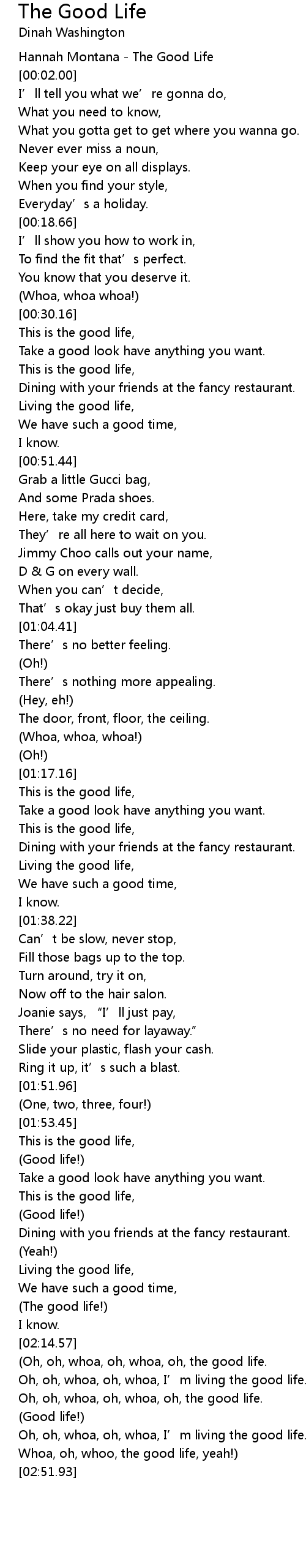 | [02:39.19] | Whoa, oh, whoo, the good life, yeah!) |